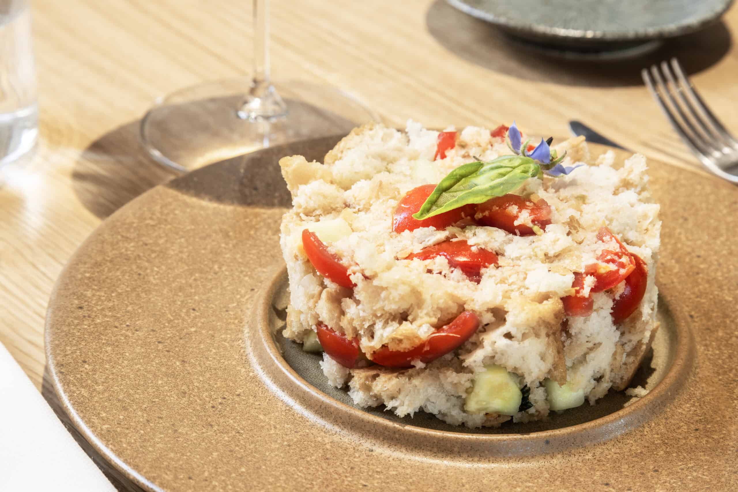 Toss the bread with the remaining ingredients, mix well, and serve cold. Garnish with basil leaves.